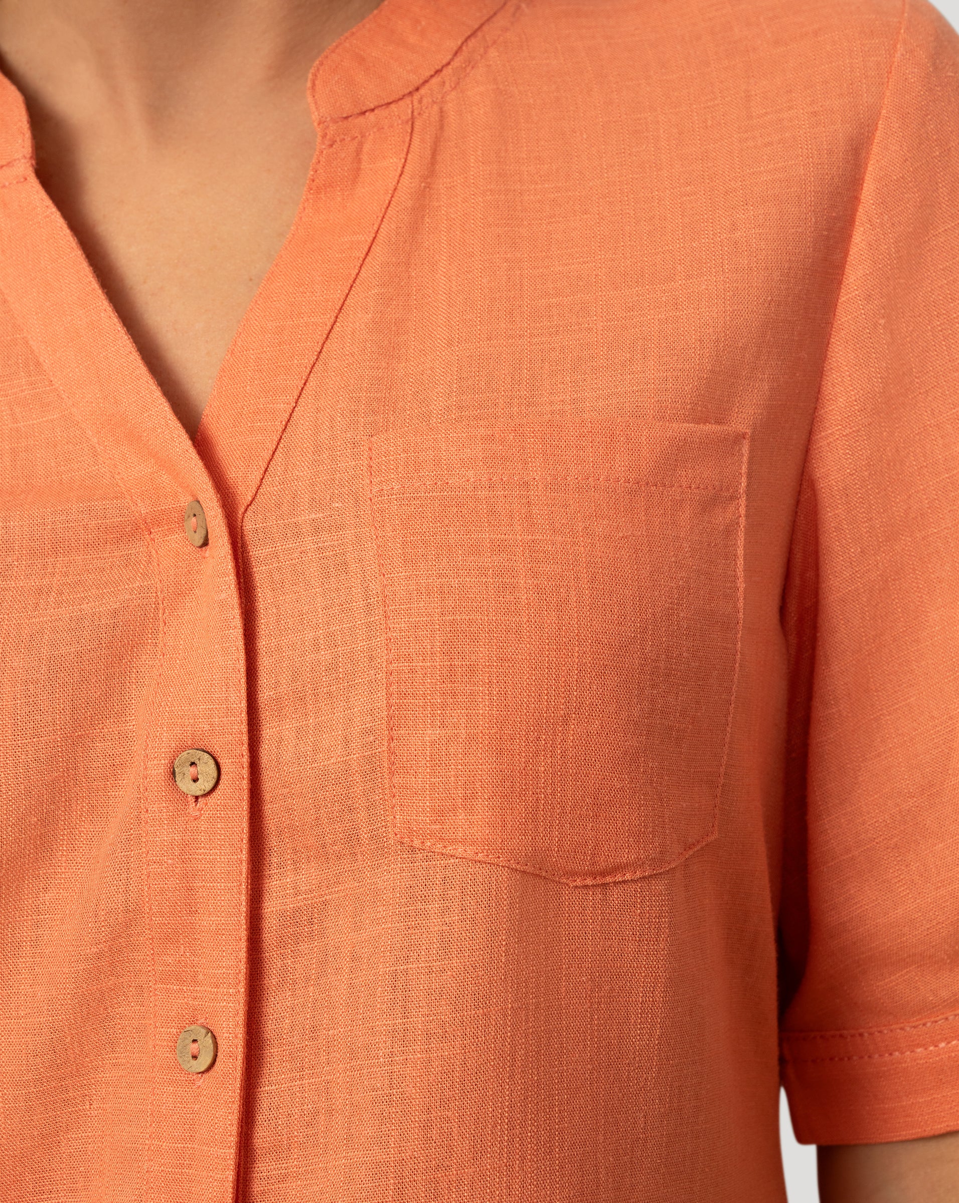 Linen Blend Button Front Top