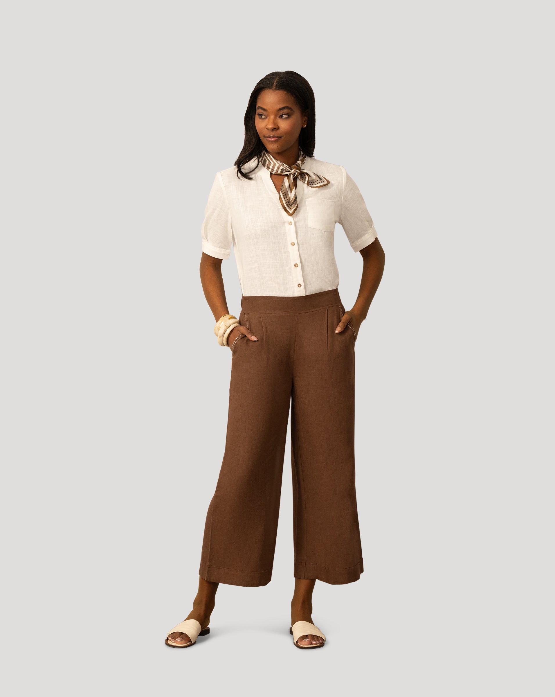 Linen Blend Pull On Crop Pant