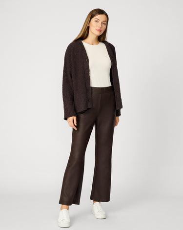 Step into sleek sophistication with this coated pull on bootcut pant. Designed with a subtle sheen for a leather-look finish, this style delivers comfort and polish in one easy piece. The pull-on waistband makes dressing effortless while the stretchy, flexible fabric ensures all-day ease. Pair it with the matching bomber or hoodie for a modern set, or wear it solo for timeless versatility.