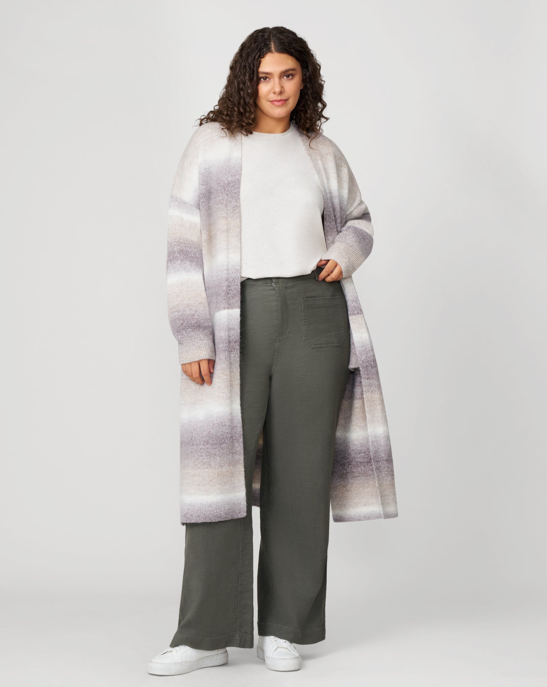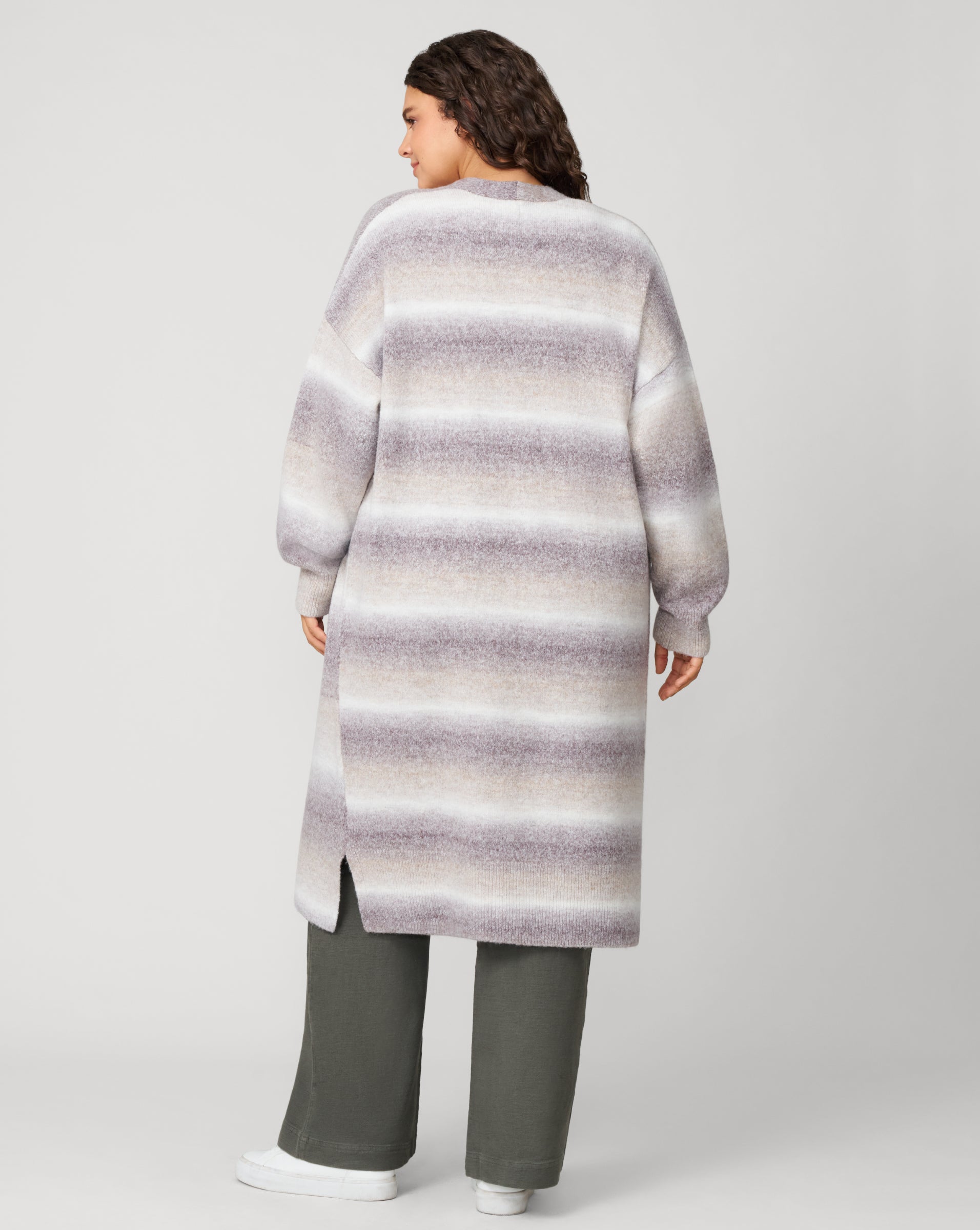 - Open front, duster-style cardigan.