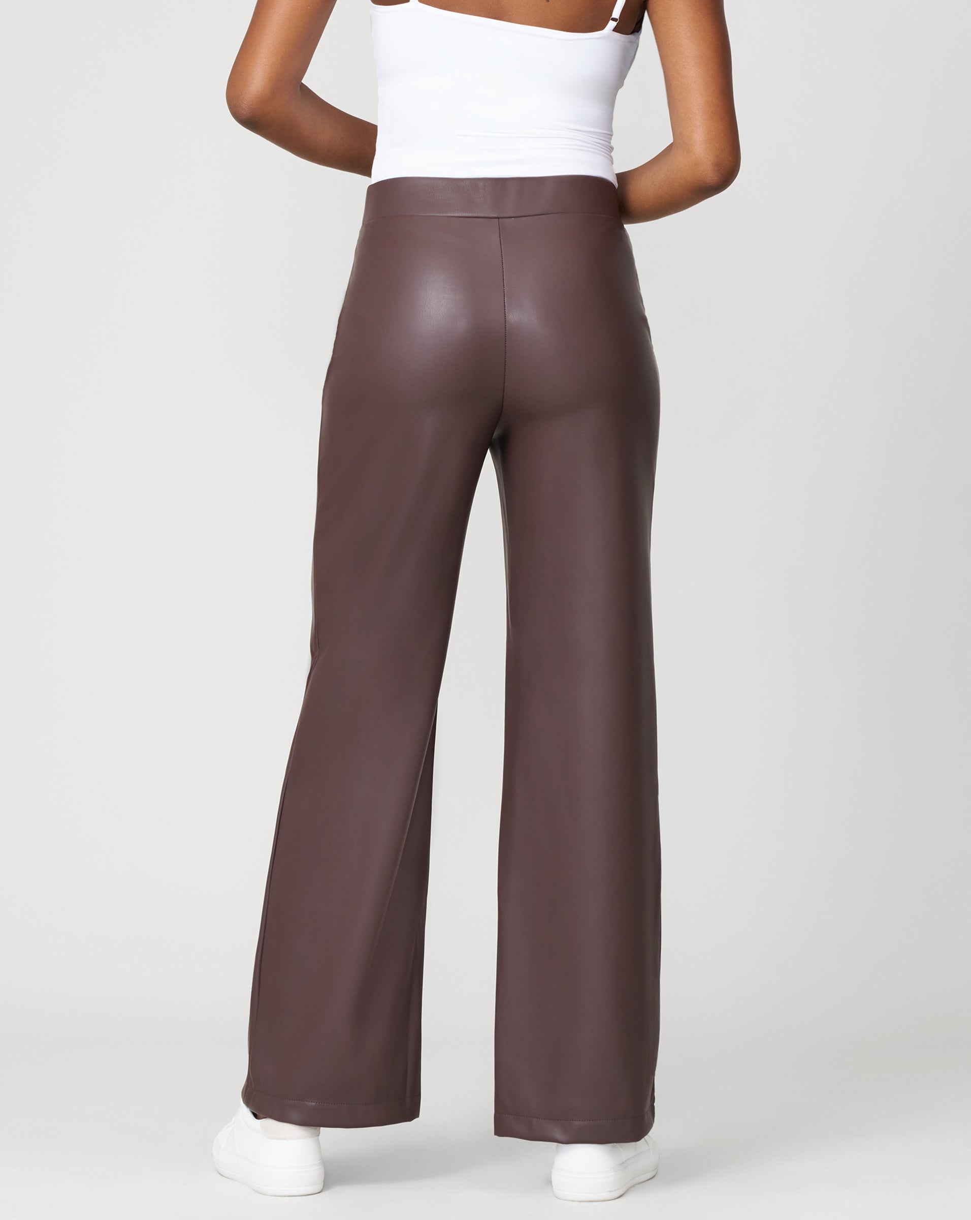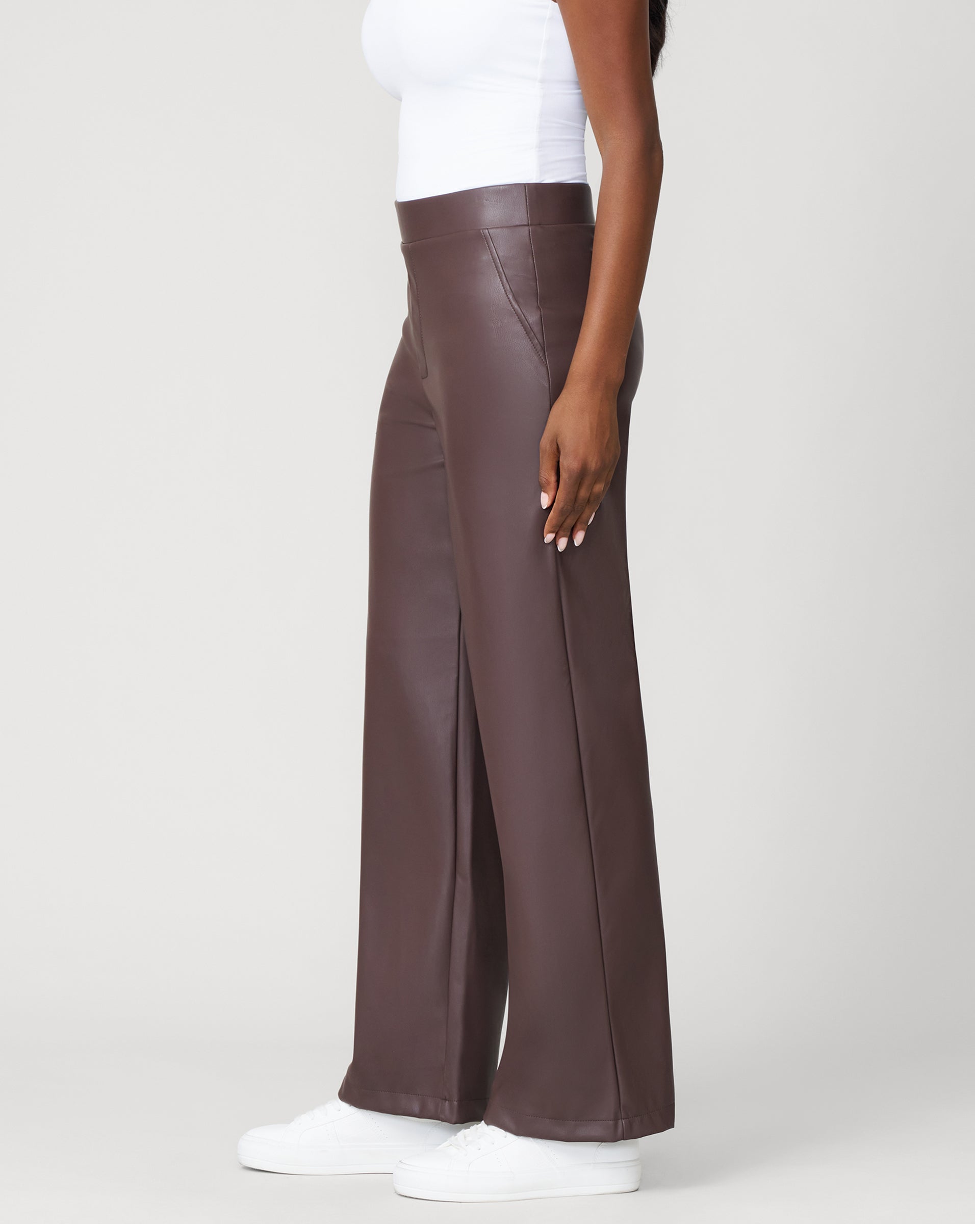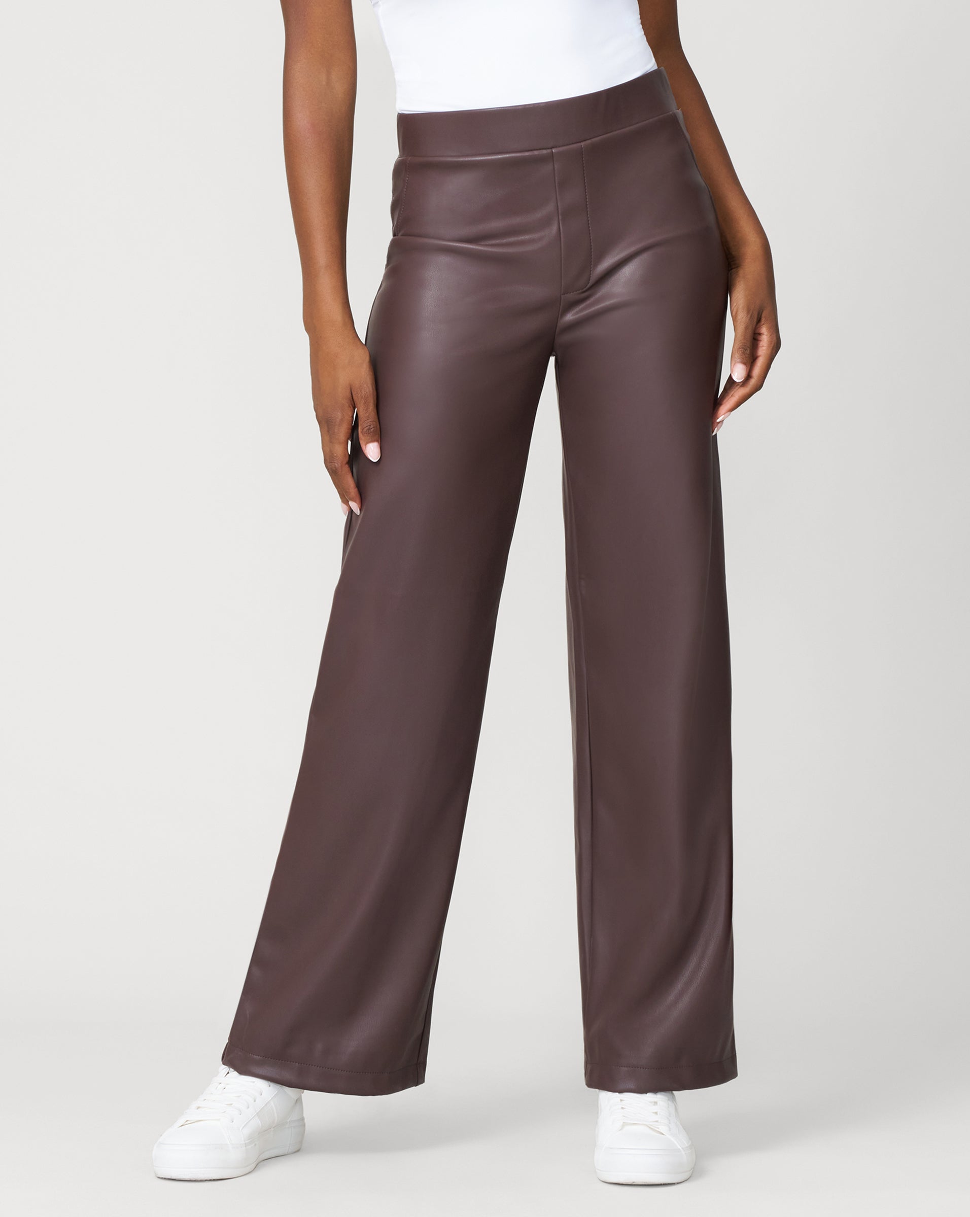 • Soft, vegan leather pant with comfortable pull on waistband and stylish wide leg