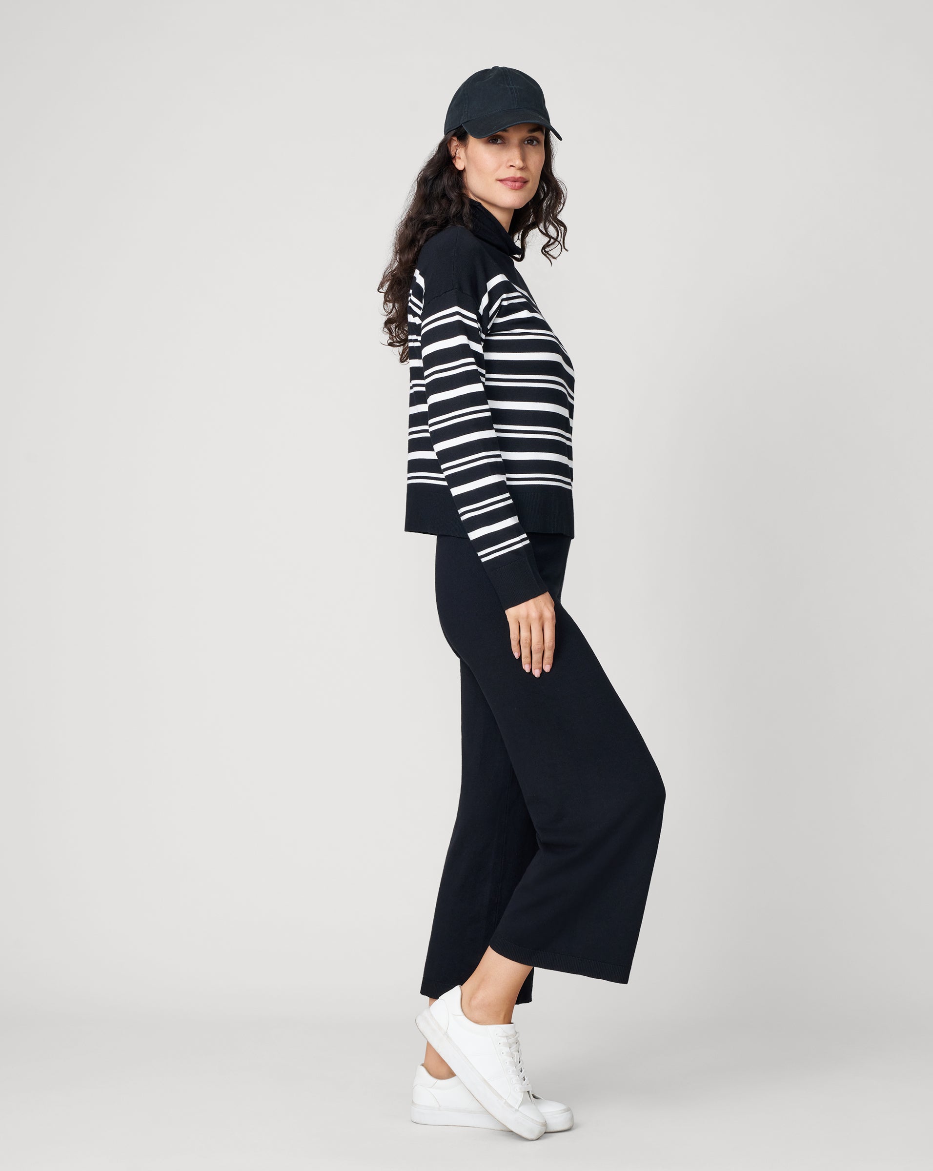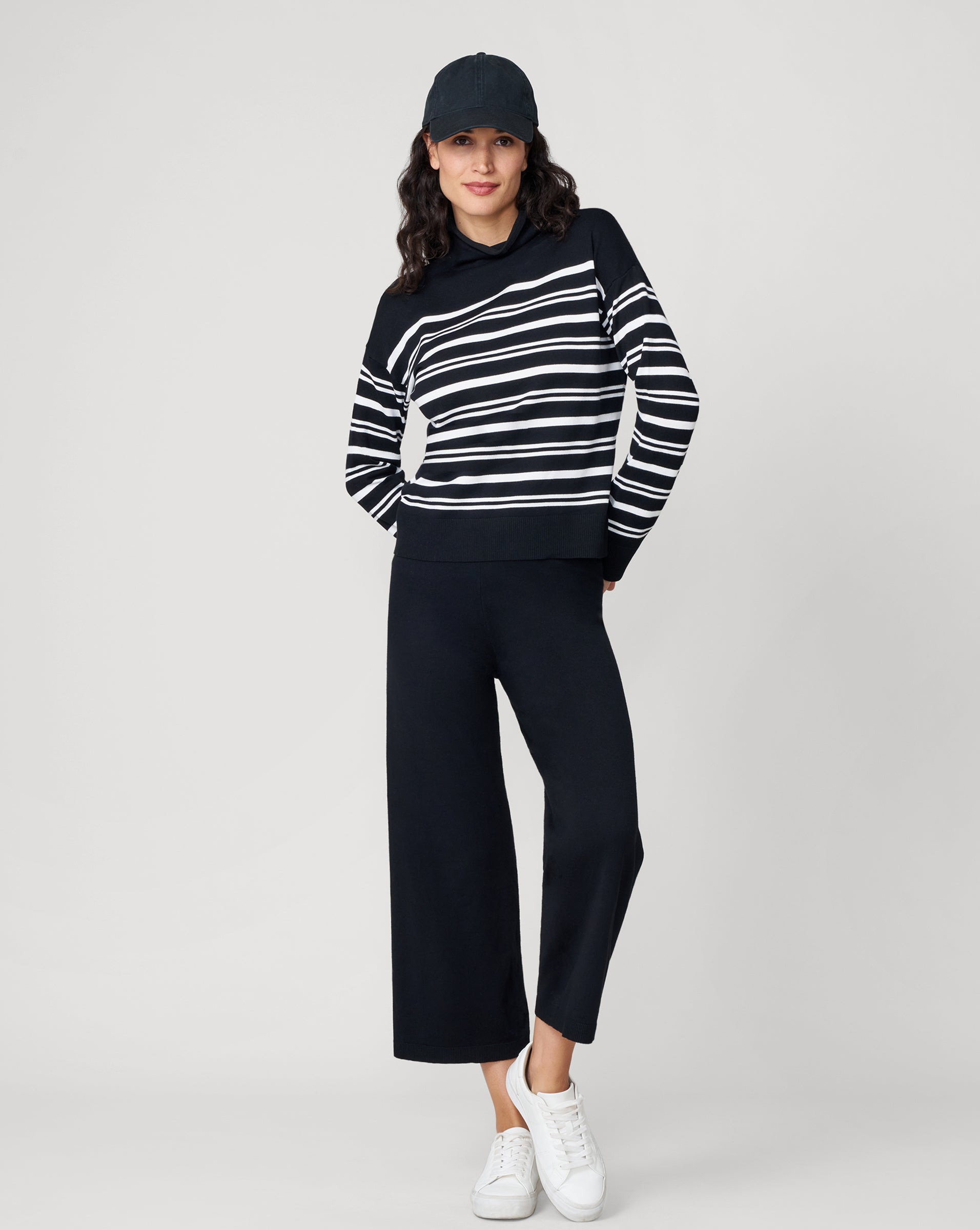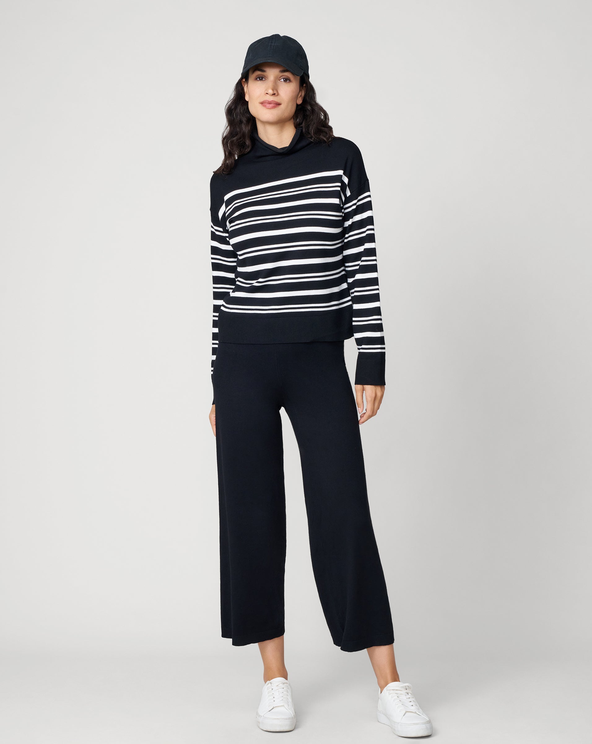 Funnel Neck Stripe Sweater & Wide Leg Pant Set