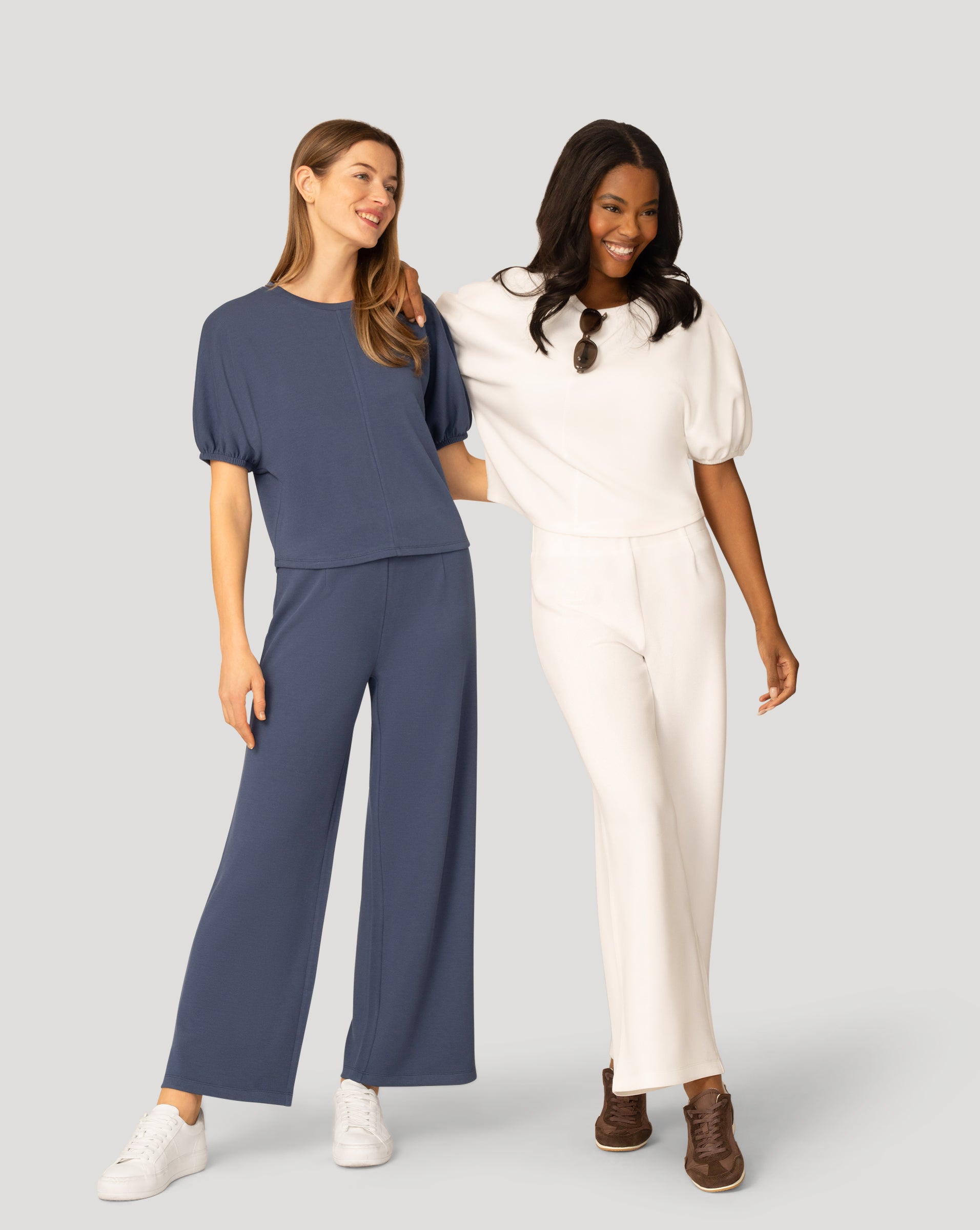 An effortless two piece set designed for comfort and polish in equal measure. The relaxed balloon sleeve top features feminine stitch details, while the coordinating wide leg pant creates a modern, flattering silhouette with easy movement. Crafted from soft piqué fabric with subtle texture and fluid drape, this set transitions seamlessly from casual days to more elevated moments. Wear together for a streamlined look or mix and match with your everyday favorites.